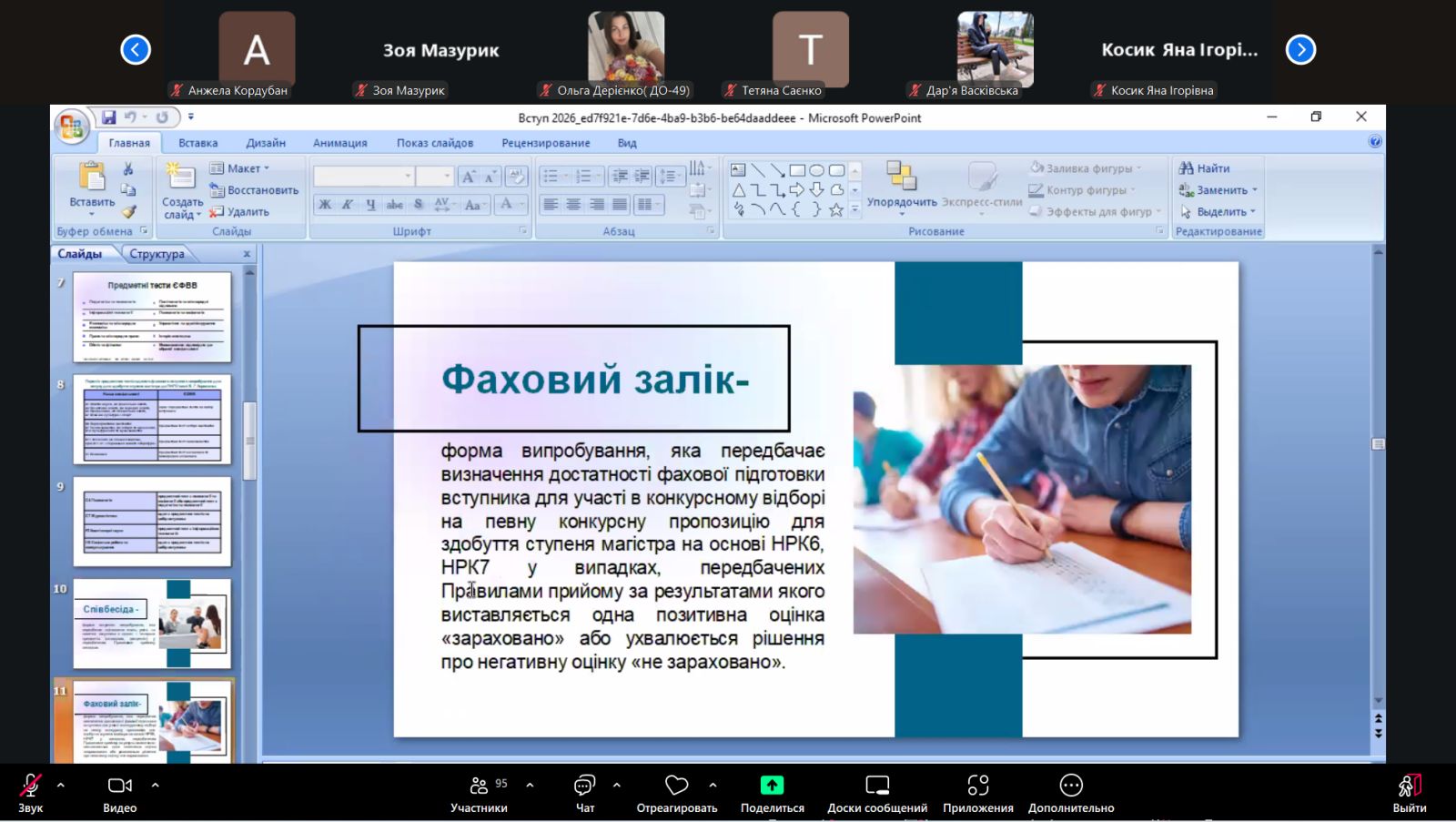 Факультет педагогічної і мистецької освіти докладає максимум зусиль, щоб кожен випускник бакалаврату мав чіткий план професійного зростання! 13 жовтня 2025 року відбулася важлива та інформативна робоча зустріч «Step Up: Шлях до магістратури», присвячена особливостям вступної кампанії та перспективам навчання на магістерському рівні, яка зібрала мотивованих студентів, готових продовжити свою освітню траєкторію. Ключовими спікерами стали декан факультету проф. Сулаєва Наталія Вікторівна, відповідальний секретар приймальної комісії університету доц. Хоменко Любов Григорівна тавідповідальна особа за курси підготовки до ЄВІ/ЄФВВ в університеті доц. Дмитренко Віта Іванівна, які надали вичерпну інформацію з перших вуст: