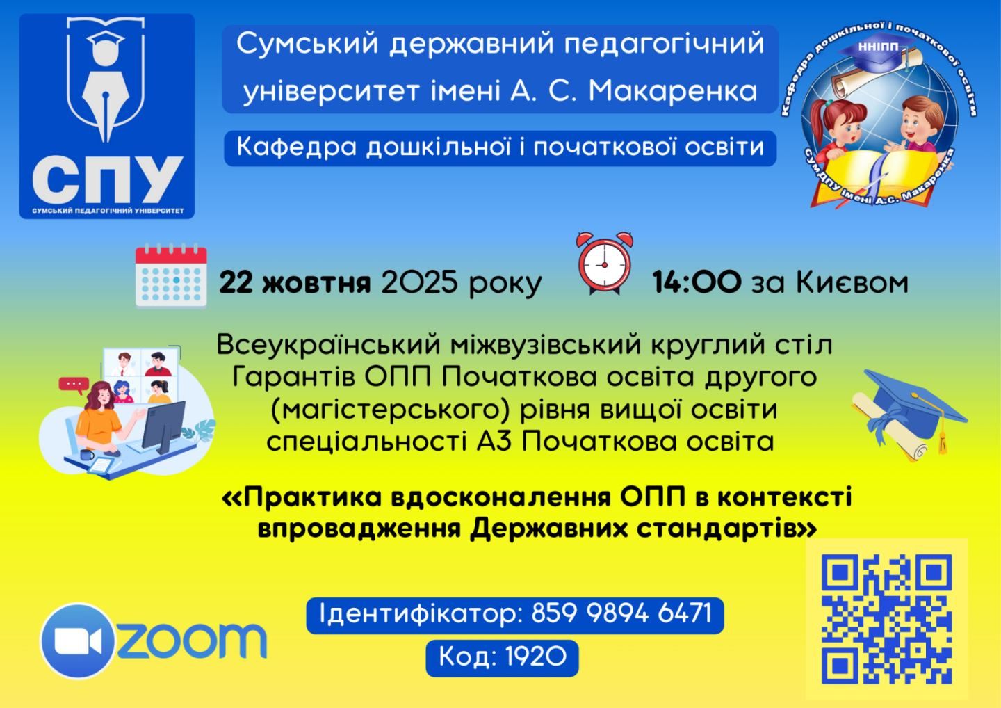 22 жовтня 2025 року завідувач кафедри професор Ольга Федій та доцент Євгенія Починок долучилися до Всеукраїнського міжвузівського круглого столу Гарантів ОПП Початкова освіта другого (магістерського) рівня вищої освіти спеціальності А3 Початкова освіта «Практика вдосконалення ОПП в контексті впровадження Державних стандартів».
