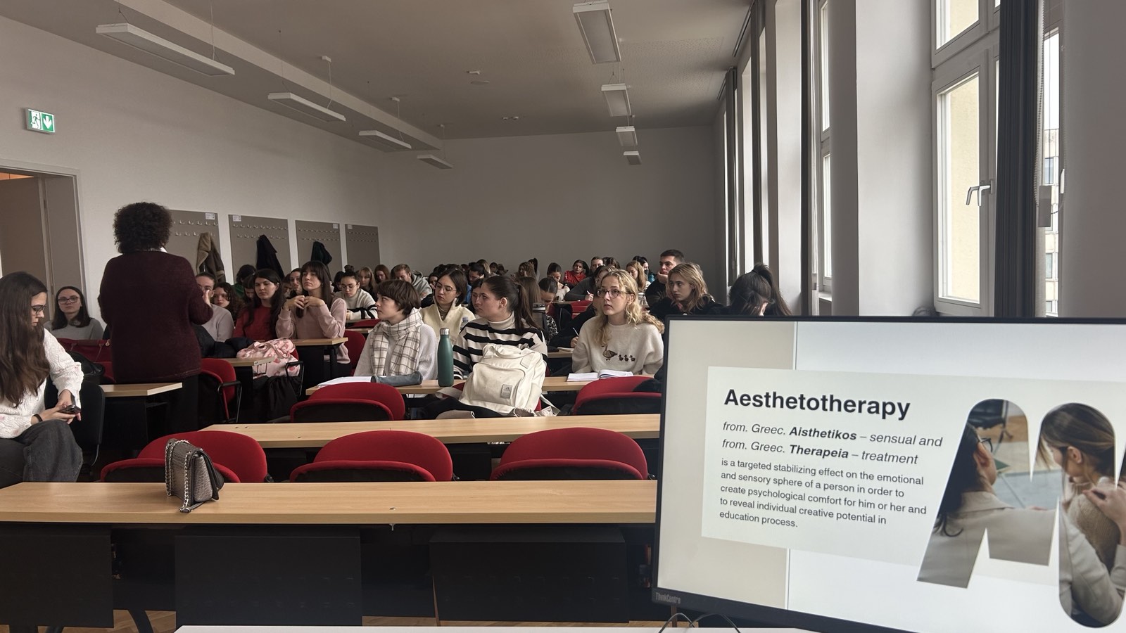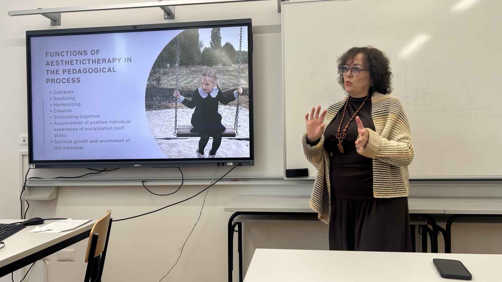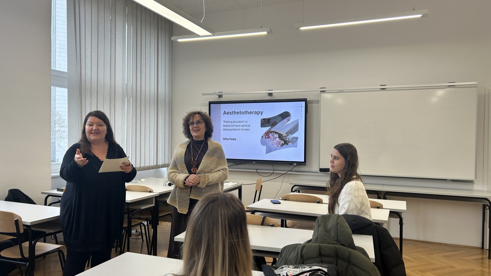 Тиждень розпочався серією лекцій професорки Ольги Федій, присвячених сучасним технологіям естетотерапії у початковій освіті. Ольга Андріївна представила свою авторську естетотерапевтичну концепцію, що є фундаментальним внеском у вітчизняну освіту. Ця концепція розглядається як відповідь на сучасні виклики гуманізації та естетизації процесу формування особистості, заснованої на принципах особистісно-орієнтованої освітньої парадигми.