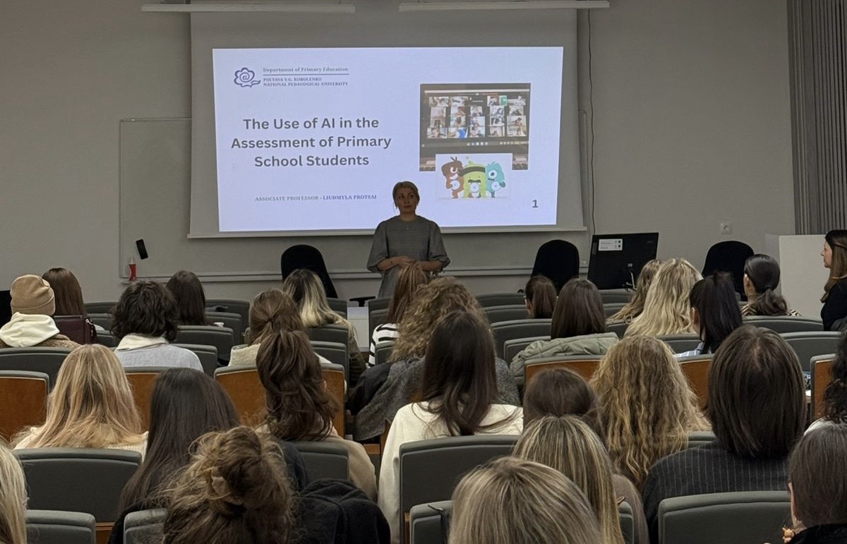 Доповнюючи гуманістичний вектор, доцент Людмила Процай представила серію лекцій, присвячених проблемам використання AI та цифрових технологій у створенні дидактичного контенту для учнів початкової школи. Вона поділилася досвідом впровадження кафедрою початкової освіти сучасних технологій цифровізації для вирішення актуальних дидактичних запитів: формувального оцінювання, цифрової етики, партнерства в освіті тощо.