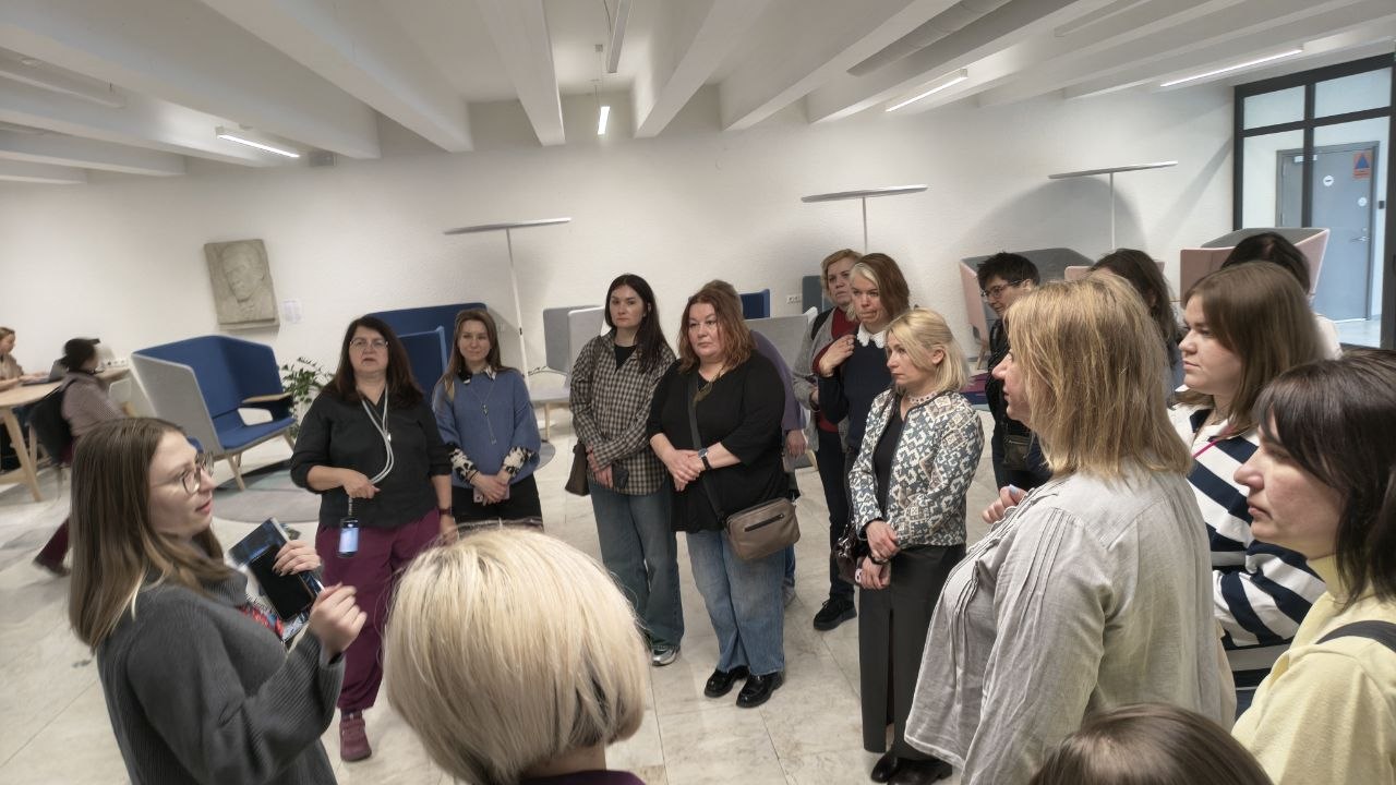 Третій день навчання (25.03.26) викладачів Наталії Гібалової, Людмили Процай та Яни Макаренко в межах проєкту AMUSE в University of Tartu розпочався з ознайомлення з бібліотекою університету, де учасники побачили різноманітні ресурси — книги, фонотеки, каталоги та бібліографічні покажчики, а також автоматизовану систему отримання та повернення літератури.