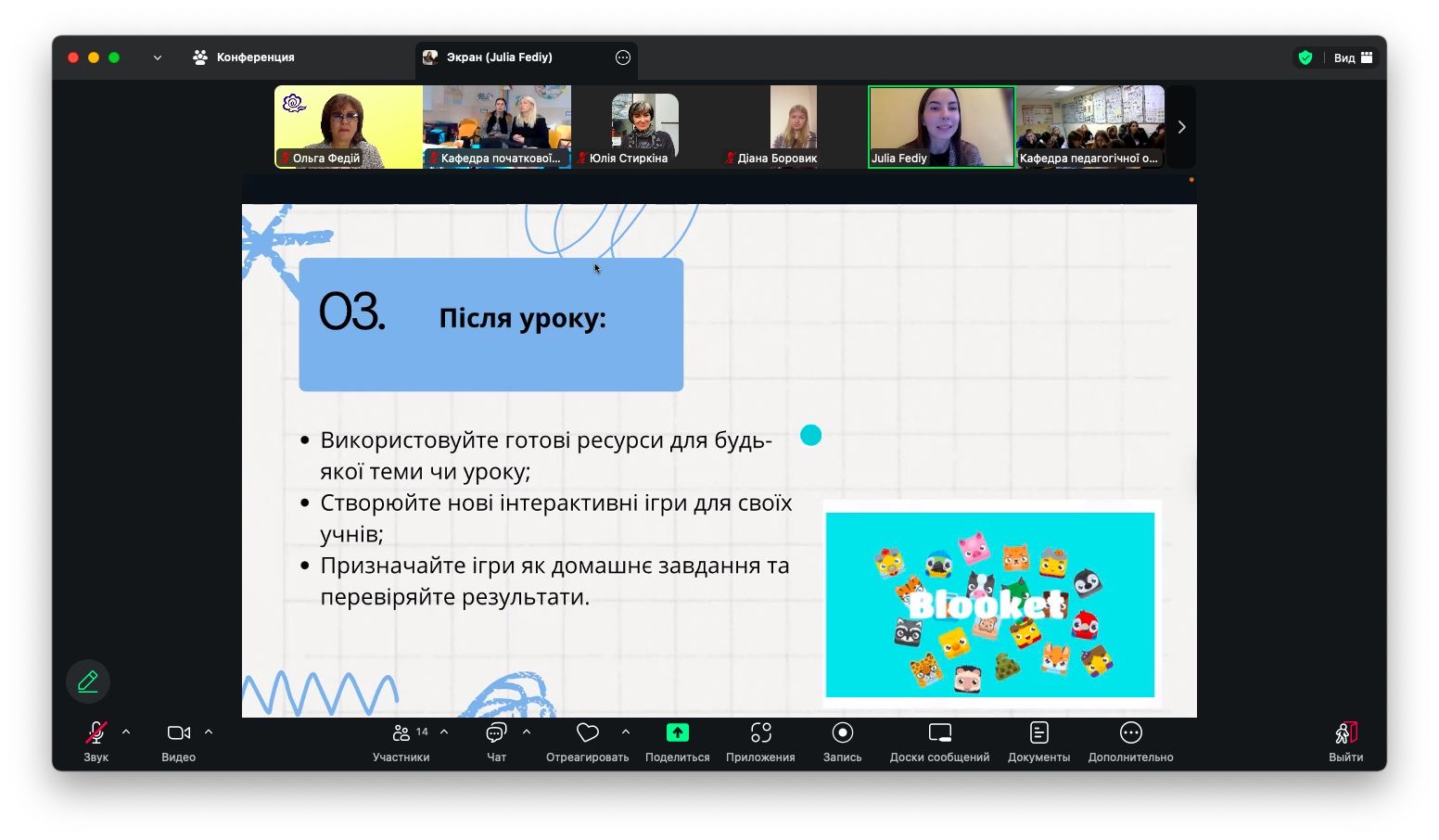 Відкрита онлайн-лекція аспірантки кафедри початкової освіти Юлії Шинкевич:як AI та інтерактивні ресурси змінюють портфоліо сучасного вчителя початковихкласів